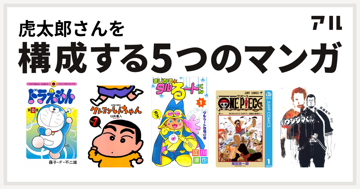 虎太郎さんを構成するマンガはドラえもん クレヨンしんちゃん まじかる タルるートくん One Piece 闇金ウシジマくん 私を構成する5つのマンガ アル